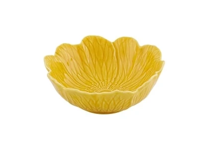 De Bordallo Flora schaal is gemaakt van geglazuurd aardewerk in een gele kleur. De schaal heeft een diameter van 12,4 cm en een hoogte van 5,7 cm. Gebruik de schaal voor het serveren van tapas of andere kleine gerechten.