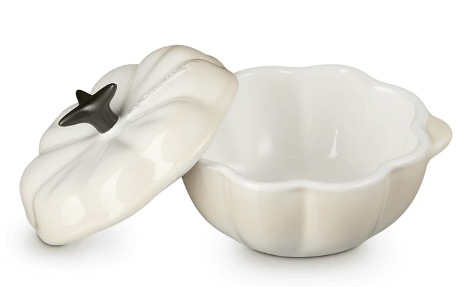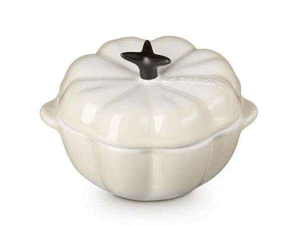 De minipan pompoen van Le Creuset is gemaakt van witgeglazuurd aardewerk en heeft is vormgegeven als een kleine pompoen. Het pannetje heeft een inhoud van 350 ml, wat hem perfect geschikt maakt voor de presentatie van kleine (bij)gerechtjes of desserts. Het openen van het pannetje zal keer op keer een verrassend effect hebben aan tafel.