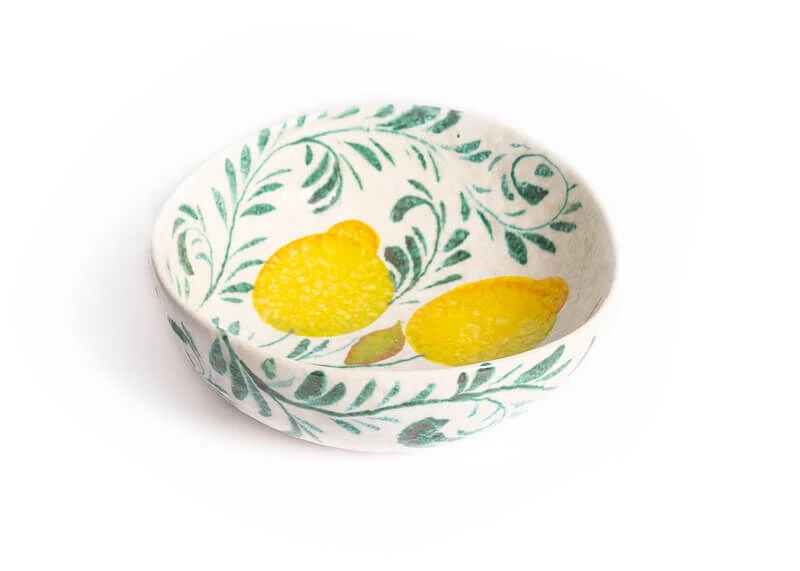 De Arabesk ovale Oldenhof schaal is gemaakt van wit aardewerk en is gedecoreerd met citroenen en bladeren. De diameter van de schaal is 20 cm en de hoogte is 7 cm. Gebruik de presenteerschaal voor salades of andere zomerse gerechten.